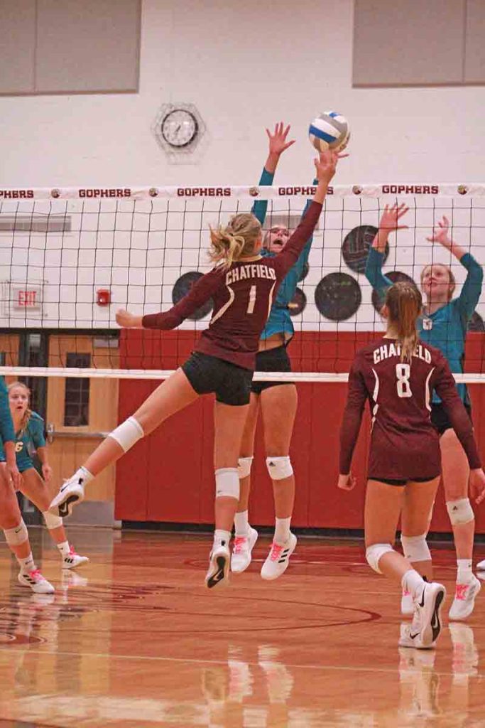 Chatfield is the defending state Class AA champions. They returned a lot of talent and experience. The Gophers put up convincing wins in week one and two, so it wasn’t a huge surprise they earned the Class AA #1-ranking in the first poll of the season. After their week three showing, they are #1 with a bullet. The Gophers put a serious shellacking on St. Charles. Jeff Johnson’s group found paydirt 10 times. Sam Backer began the contest by taking the first carry 65 yards to the end zone. With another big effort (8-201, 2 TDs rushing), the senior notched his third straight 200-yard effort to begin the season. Jackson Schild (6-75, 2 TDs rushing), Carson Rowland (6-yard TD run), and Chase Johnston (6-yard TD run) also found the end zone on the ground. Through the air, Parker Delaney (5-9, 84 yards, 2 TDs passing) hit Luke Carrier (8 yards) and Carter Daniels (30 yards) for scores. Lynn Borgen added a 25-yard fumble recovery TD. The Gophers led 35-0 at halftime. They scored at least twice in every quarter in posting a 69-0 victory. Ben Carrier (5-45 rushing) did some good relief-work running without scoring. Drew Schindler had 30-yard reception, punt returns of 29 and 27 yards. Jacob Erickson authored 11 kickoffs. St. Charles didn’t complete a pass and were held to 100 yards rushing on 50 carries. The #1 Gophers (2-0, 3-0) and #3 Caledonia (2-0, 3-0) are atop the Southeast-White. The Saints are 1-2.