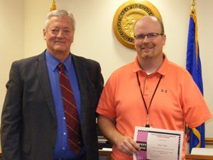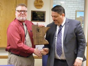 Wayne Sandberg, president of the Minnesota County Engineers Association, was present to recognize the county’s outstanding achievement at the board’s February 26 meeting. At a recent annual meeting of the Engineers Association, Fillmore County was selected for the 2018 Project of the Year award for its CSAH 1 project.
