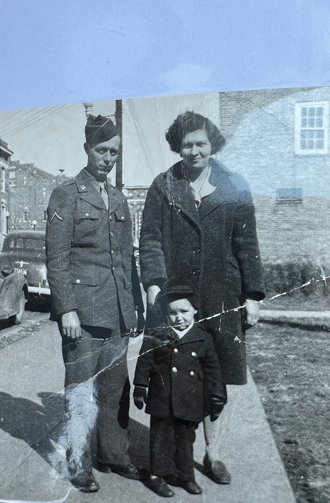 Army Pvt. 1st Class Jerry Allen Johnson pictured as a young boy, flanked by his parents, Harvey and Bernice (Muns) Johnson. Photo by Charlene Corson Selbee