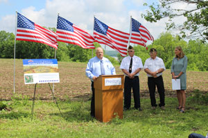 Veterans, local officials, and community members gathered at the entrance of a soybean field on a sunny May 31 morning to celebrate the inclusion of veterans home funding in the 2018 Minnesota bonding bill. Preston Mayor Kurt Reicks welcomed everyone to the future site of the veterans home, calling it a great day for veterans in southeast Minnesota.