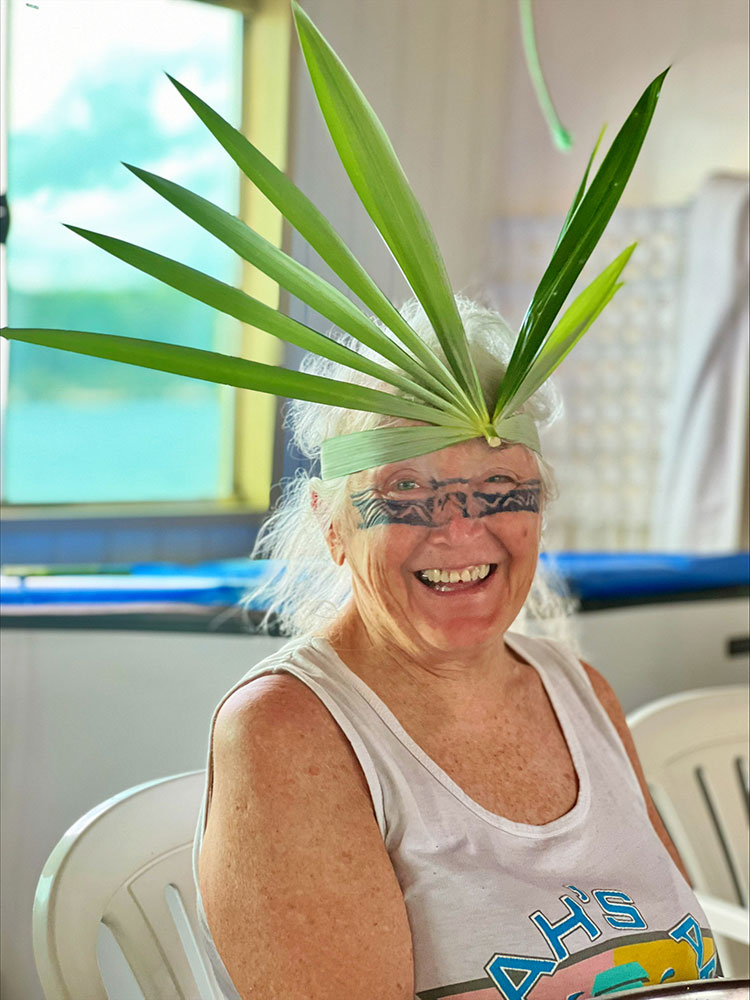 Linda King enjoying her first visit to the Amazon rainforest. Photo by Kara Otterness