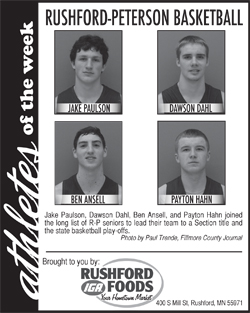 Athlete of the Week – Jake Paulson, Dawson Dahl, Ben Ansell, Payton Hahn April 2, 2018 by Fillmore County Journal