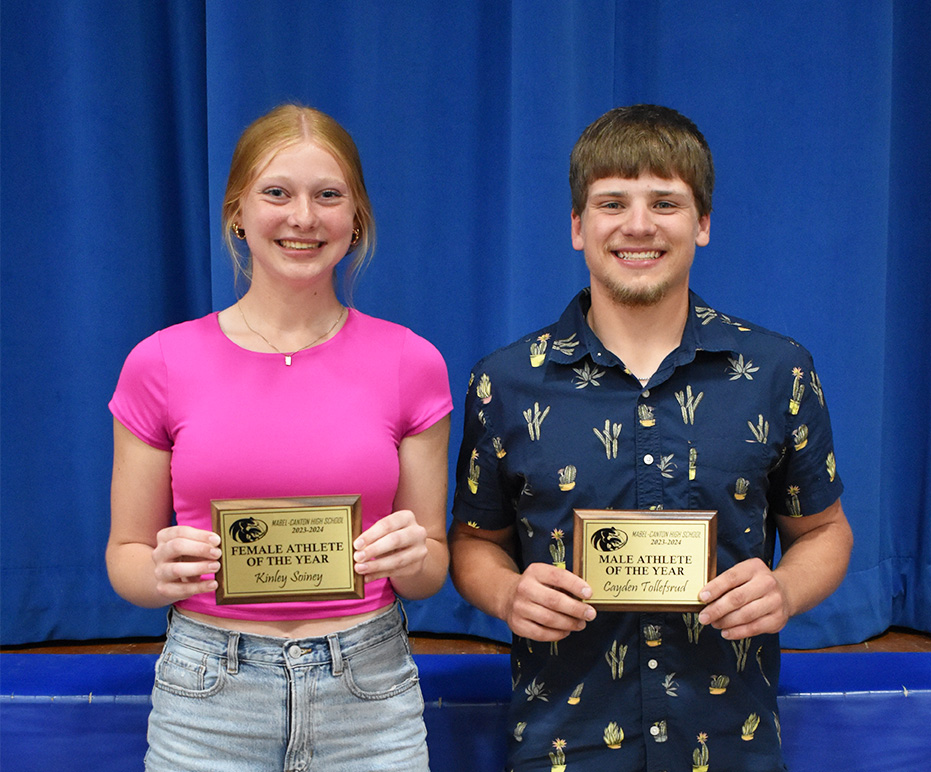 Mabel-Canton’s female and male Athletes of the Year are junior Kinley Soiney and senior Cayden Tollefsrud. Each was a three-sport All-Conference selection. Photo by Heather Kleiboer