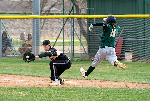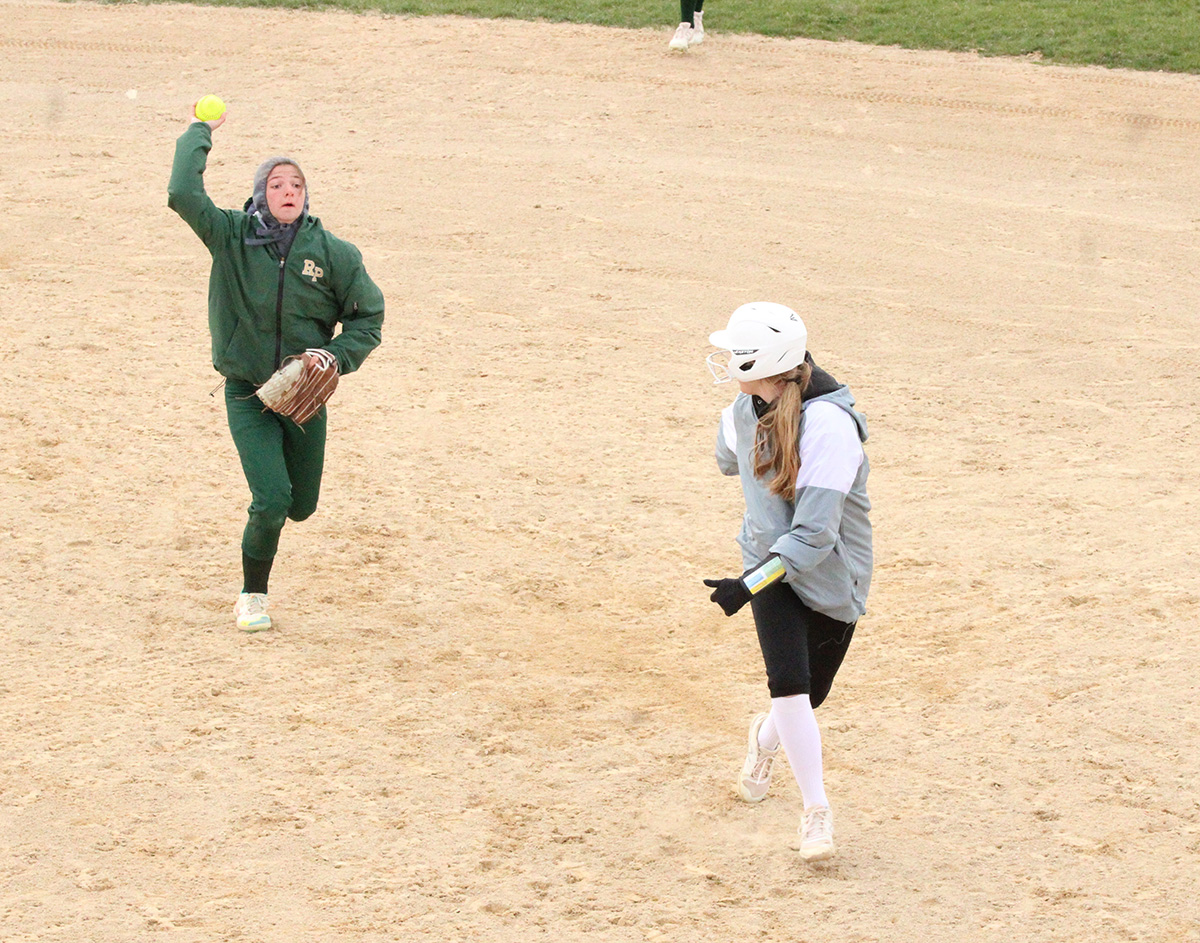 Warrior softball had just a doubleheader with R-P. It was mostly easy sailing despite a 20-30 mile per hour wind whipping in from the outfield. Not too much made the outfield. In game one, Caledonia had eight walk-RBIs. Trojan pitching gave up 19 free passes. Caledonia won 17-2 in five innings. Paizley Lange (1-2) had three RBI and three runs to lead the Warriors. Avery Augedahl (2-3, RBI, 3 R), Elsa Blum (1-1, RBI, 2 R), Vivian Kittleson (1-2, 2 RBI, R), and Kennedy Hansen (0-1, RBI, 3 R) helped on offense. Braelyn Lange (4 IP, 0 H, 2 R, 0 ER, 2 BB, 8 K) did not surrender a hit in collecting the win. She improved to 4-1. Ellie Ekern and Shelby Tesch scored for the Trojans. Game two saw the Warriors win 13-0 in five innings. Augedahl (5 IP, 0 H, 0 R, 0 BB, 5 K) was an error and a hit-batter away from a five-inning perfect game. The freshman (1-2) also scored twice. Hansen (2-3, RBI, 2 R), P-Lange (2-3, 2B, RBI, 2 R), Adrienne Lange (1-2, 2B, RBI, 2 R), and Annah Anderson (1-2, RBI, R) also supplied offense. The Warriors (4-1, 7-1) won their seventh in a row. They trail Cotter (6-0, 6-1) in the TRC-East. The only loss for Chad Augedahl’s squad is to the Ramblers, 6-5, in the season-opener. The Warriors are scoring 10-plus runs per game.