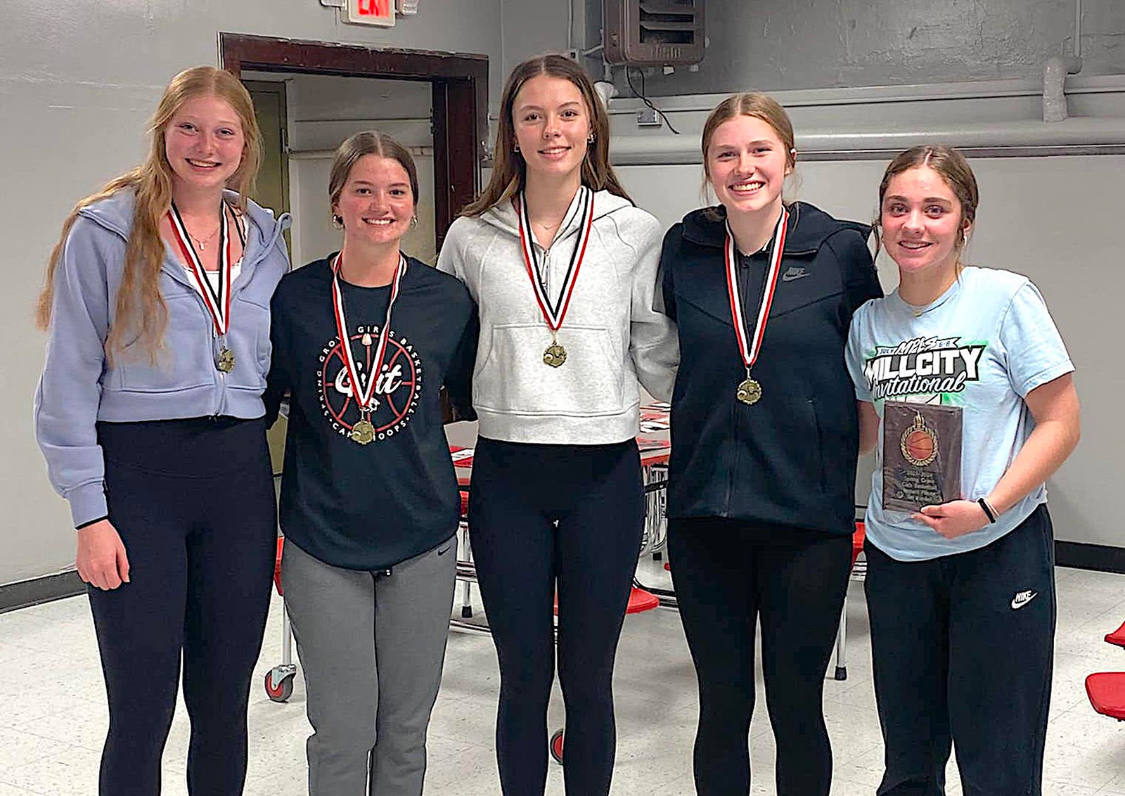 Spring Grove girls basketball announced their 2024 team awards. From left are Kinley Soiney (Hustle Award), Izabell Kaufmann (Most Improved), Kylie Hammel (co-GRIT Award), Emerson Ingvalson (co-GRIT Award, 2nd year) and Siri Konkel (Impact/Most Valuable, 2nd year).