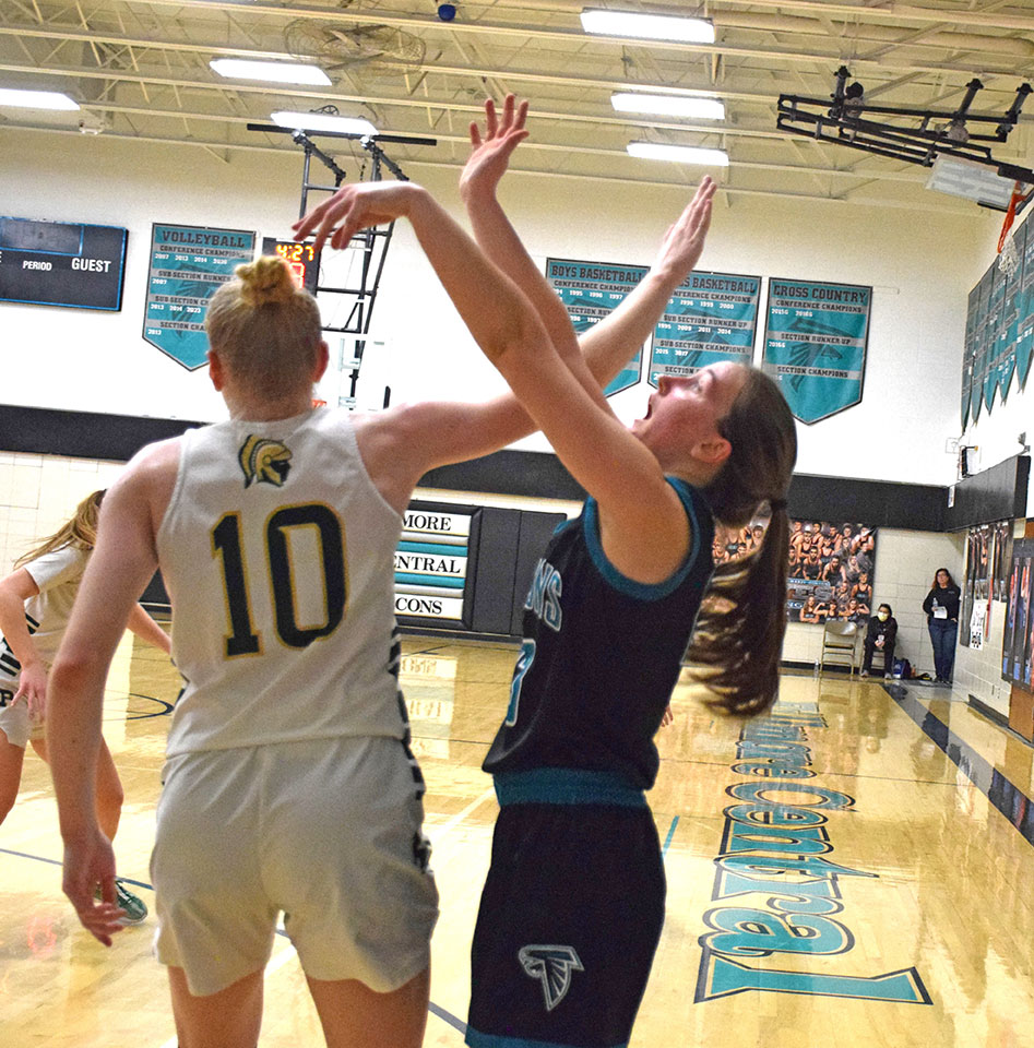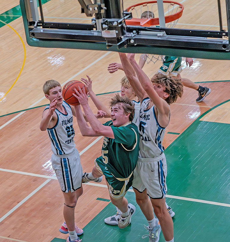 Rushford-Peterson and Fillmore Central had their first boys/girls series of the year. The guys game was an overtime gem. The home #18 in A Trojans (6-3, 15-4) came out smoking early. Senior forward Dawson Bunke hit five early threes and scored 16 points in the first eight minutes as Chris Drinkall’s group jumped out to 19-3 and 28-8 leads! But trailing 32-12, FC ended the half out-scoring the Trojans 26-13 to only trail 45-38 at intermission. FC then cooked with three threes to start the second half. They nailed their first six field goals. And R-P looked up at a 54-51 deficit. The game was then tight. R-P built a six-point edge (60-54). FC led by five (75-70). Per a Cayden Lea driving bucket, the home Trojans were up 81-75 late (1:33). But FC finished on an 8-2 run. Greg Kennedy, who vacuumed the offensive glass all game, had two put-back buckets late. The second came after Clayton Schoepski scored but missed his and-one free throw; a four-point possession. It tied the game 81-81 (0:50)! Schoepski preceded the series by taking a charge on defense. Bunke then scored to put R-P back ahead 83-81. In the final 10 seconds, Luke Hellickson hit Jayce Kiehne on a back-door cut and tough reverse finish to again tie the game 83-83 (0:07). FC then got a steal but could not score and the game went to overtime! There, Kennedy banged home a three, then Schoepski hit a three, to give FC an 89-84 lead. R-P was down starting point guard Lea, who fouled out in regulation). He had a monster game (33 pts, 12-21 FGs, 4-8 threes, 6 rebs, 4 asts, 5 stls). The Trojans could not recover. FC hit all six overtime free throws, Kennedy going 4-for-4, and the Falcons notched a key Section 1A win, 95-87. Kennedy (24 pts, 9-13 FGs, 19 rebs, 4 asts, 3 blks) had 17 second-chance-points by himself on eight offensive rebound put-backs! Hellickson (23 pts, 4-11 threes, 6 rebs, 4 asts) and Kiehne (18 pts, 8 rebs, 5 asts) also had big games. Schoepski (14 pts, 4-10 threes) and Josh Haugerud (9 pts 3-7 threes) hit key trifectas. Bunke (28 pts, 7-12 threes) and Lea scored 61 of R-P’s 87 points. Cole Thompson (14 pts, 4-12 threes, 5 rebs) and Caden Johnson (7 pts, 5 rebs, 5 asts, 4 stls) helped. FC hit 13 of 35 threes, R-P 15 of 35 trifectas! Field goal shooting was near identical, FC 32 of 74 (43%), R-P 31 of 74 (42%). FC was plus-seven at the free throw line; 18 of 22 (82%) to 11 of 15 (73%). FC improve to 4-6, 12-8. R-P (6-4, 15-5) had a four-game win streak snapped. The girls game saw the Trojans end the first half on an 8-0 run to lead 29-20. They led by five or more the rest of the way in posting a 54-45 win. Ellie Ekern (21 pts, 13-14 FTs, 5 stls) led the way. Torryn Schneider (15 pts, 6-8 FGs, 3-4 FTs, 4 stls) and Tayler Helgemoe (10 pts, 12 rebs) helped. Kammry Broadwater (18 pts, 9-10 FTs, 6 rebs, 4 asts, 4 stls) was the only Falcon with more than six points. FC shot more free throws (20 of 37 > 54%) but R-P scored more points at the stripe (24 of 33 > 73%). R-P improved to 8-4, 15-6. FC fell to 4-6, 12-9.