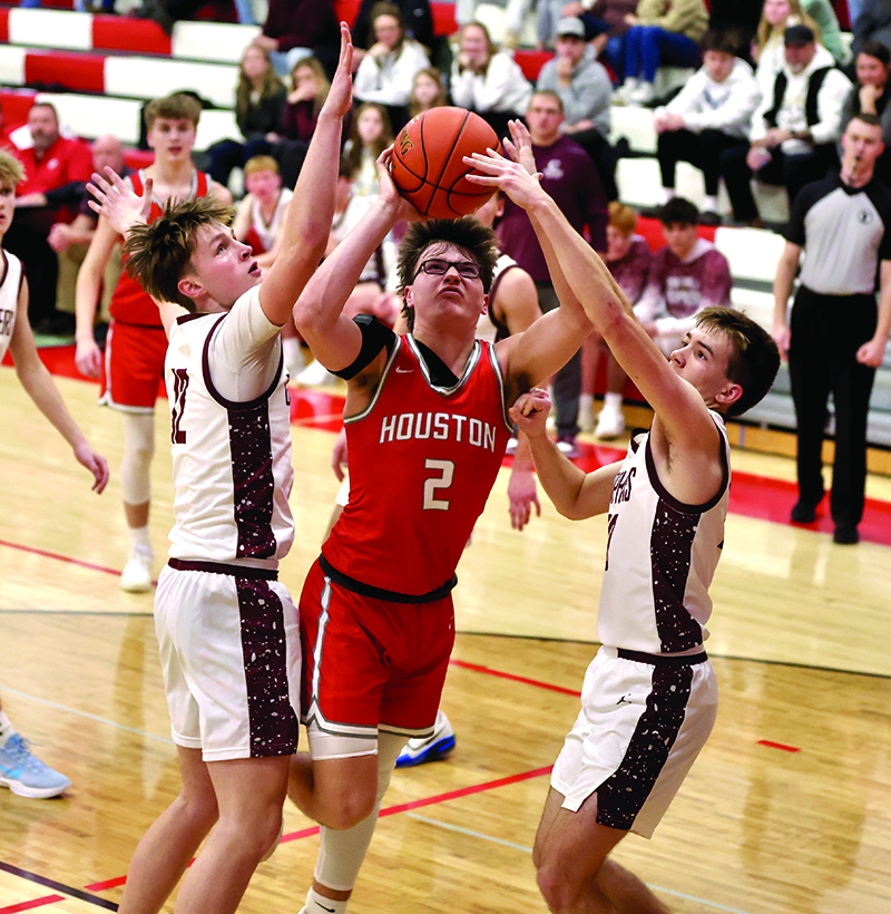 Chatfield 75, Houston 35 (C: C. Harstad 23 pts, 9 rebs, 5 asts, 5 stls; R. Stoehr 22 pts (9-15 FGs), 10 rebs, 3 asts, 3 stls; B. McBroom 8 pts, 6 rebs, 4 asts; Brooks Lea 7 pts, 6 rebs. H: Tilden Witt 14 pts (7-10 FGs); Axel Vix 8 pts. The Gophers are 1-2 in the TRC, 4-6 overall. The Hurricanes are 1-4 in the SEC, 1-9 overall)