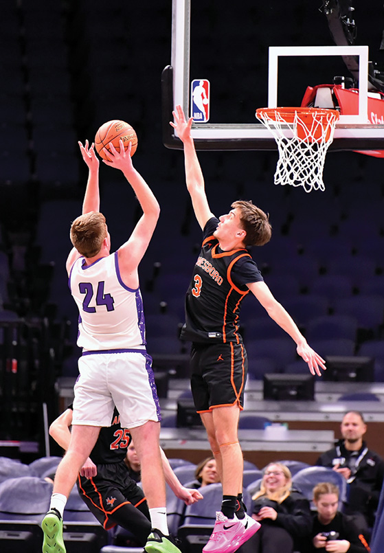 Lanesboro and Grand Meadow basketball teams each got to play on the big floor in Minneapolis, as the teams participated in a special doubleheader at the Target Center. Shooting was a struggle for all teams in the big arena. Leading 15-14 at halftime, GM’s girls strung three straight makes together early in the second half to lead 21-14. Lanesboro was then within three thrice and two once, 36-34, with 5:57 left. But Steve Storhoff’s Burros got no closer. They had couple possessions down 41-38 late, but missed threes each time. Lark senior Aspen Kolling hit a key triple with 0:53 left to push GM’s lead to 45-38. Lauren Queensland and Gracie Foster then each hit a pair of free throws to ice the win, final tally 49-41. Ryan Queensland’s group had four in double figures, including daughter Lauren, who led her team in four statistical departments (14 pts, 11 rebs, 5 asts, 4 stls). Kolling (11 pts, 3-7 threes), Rylee Schaufler (10 pts, 5-8 FGs, 5 rebs), and Foster (10 pts) helped. The latter put up all her points in the second half. Jensyn Storhoff (16 pts, 8 rebs, 4 asts, 4 stls) naturally led the Burros, as the game was a battle of father/daughter coach/player teams. Taylor Hanson chipped in 8 (pts) and 3 (blks). Each team had 15 turnovers and made six threes. The teams shot near identical; GM 18 of 52 (35%), Lanesboro 17 of 50 (34%). GM was plus-six at the free throw line, making 7 of 8 (88%) to Lanesboro’s 1 of 4 (25%). They also won on the glass 38-29. The Larks (5-1, 8-1) got some help from Southland, which beat first place Spring Grove (2-1, 5-3) by a 57-49 tally. GM now is three games up on the win column on the Lions atop the SEC. The Larks have won seven straight since their only loss to SG. The GM/Lanesboro boy’s game was controlled by Matt Asleson’s Burros, as they started the contest 14-1. The closest GM then got was five twice, the last at 36-31 with about 6:00 to play. It was a game where both teams struggled to score against the zone defense. The Larks had a stretch towards the end of making just 3 of 21 shots. The Burros prevailed 43-36, their second victory over GM this year, this of the non-conference variety. Neither team had anyone make double figures. Levi Rogers (9 pts, 10 rebs, 4 stls) led Lanesboro, helped by Nick Taylor (8 pts), David Harvey (7 pts), Reid Olson (6 pts), and Jackson Taylor (6 pts). N-Taylor, a 6’3” sophomore forward, had a memorable one-hand dunk in traffic in the second half. Carter Glynn (9 pts, 10 rebs, 3 asts, 3 stls) and Cohen Craft (9 pts, 8 rebs) led GM. Craft did his work off the bench. Logan Grafe added 4 (pts) and 10 (rebs). Lanesboro shot 35% (18 of 52), GM 23% (13 of 56). The Larks fell to 1-4 in the SEC, 1-7 overall.
