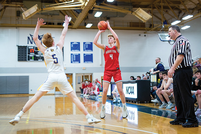 Houston’s basketball teams continued their good starts to the season with three combined wins on either side of New Year’s Day. Heath Olson’s girls won twice on the week. The Hurricanes out-scored Randolph 55-29 in the second half, shot a season-high 61% for the game (38 of 62), and scored a season-high point-total in posting an 85-47 win. The strong junior guard twosome of 5’11” Aubry Boldt (26 pts, 13-21 FGs, 6 rebs, 5 asts, 3 stls) and 5’6” Avery Kingsley (25 pts, 11-17 FGs, 5 rebs, 4 asts) combined for 51 points on 63% shooting. Emily Botcher (14 pts, 6-8 FGs, 5 rebs) and Jorja Meyer (8 pts, 5 rebs) helped. Both Houston teams trekked to Decorah for a couple re-scheduled Border Battle contests with MFL-Mar-Mac (Monona-Farmersburg-Luana-Marquette-MacGregor). The girls jumped out 20-5 on the Bulldogs and then won by 14, 50-36. Kingsley (20 pts, 7-12 FGs) authored her second 20-plus-point game of the week/season as she rounds back to form after an off-season knee injury. Boldt added 15 points (5-8 FGs) and four rebounds. The Hurricanes improved to 7-3 overall (3-2 in the SEC). Jake Merchlewitz’s guys had just one game, playing MFL-Mar Mac. After averaging 10.3 PPG prior to the span, senior Carter Geiwitz (20 pts, 8-12 FTs, 10 rebs) authored his third straight 20-plus-point game. Hitting 16 of 23 free throws (70%), the ‘Canes got the 60-52 win. Morgan Rohweder (16 pts, 3-6 threes, 10 rebs) also had a double-double. Maddox Rodriguez (8 pts) and Zach Olson (7 pts, 8 rebs) helped. It was the senior-laden “Canes” fourth straight win, as they improved to 5-2 overall (3-1 in the SEC). Schaeffer Academy (5-1, 5-2) leads the SEC-East over the Hurricanes.