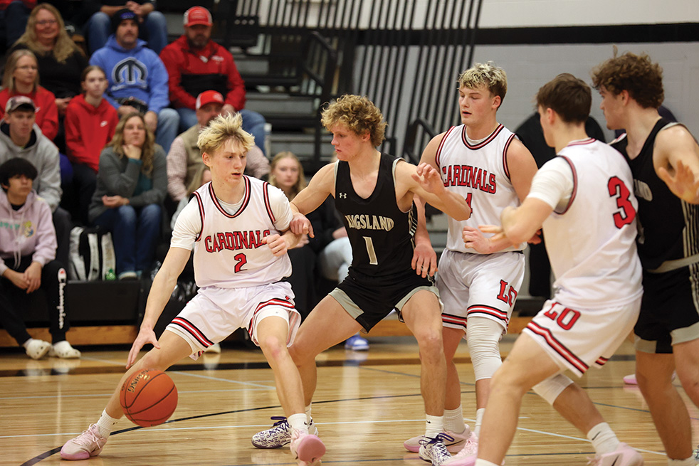 Kingsland and LeRoy-Ostrander tangled for their first of two boys/girls’ basketball series. The boy’s game had some strong individual scorers going at it in a re-match of the 9-Man football finals but on the hardcourt. Knight Max Erdman scored a game-high 29 points (9-15 FGs, 5-9 threes, 6-8 FTs) and snared 15 rebounds. Teammate Parker Johnson added 20 points (8-14 FGs) as Jim Hubka’s group got the 64-52 win. Cam Hungerholt scored a game-high 24 points to lead L-O, as he made 11 of 14 free throws. Brother Reid Hungerholt chipped 14 points. Ryder Stern added 6 (pts), 6 (rebs), and 4 (stls). Kingsland hit 8 of 17 (47%) threes, L-O 1 of 17. The Knights improved to 4-3 in the SEC, 6-4 overall. L-O fell to 1-4, 2-6. The girl’s game was a battle of teams needing a win. John Fenske’s Knights got it, 51-38, ending a five-game losing streak. Macy Runck (15 pts, 3-9 threes, 4 asts) was the only player in double figures. Lydia Redman (9 pts), Chantle Reiland (9 pts), and Hailee Warren (5 pts, 7 rebs) also aided the double-K cause. Miranda Nagel (9 pts, 12 rebs), Maria Almaraz-Nolt (8 pts, 7 rebs), and Benita Nolt (7 pts, 12 rebs) did work for the Cardinals. The Knights improved to 1-2 in the SEC, 2-5 overall. L-O fell to 0-5, 0-8.