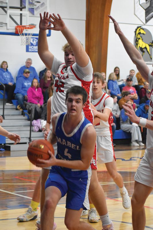 LeRoy-Ostrander 44, Mabel-Canton 77 (M-C: N. Garness 23 pts (9-14 FGs, 5-10 threes), 5 rebs, 4 stls; I. Underbakke 17 pts (7-14 FGs), 7 rebs, 10 asts, 4 stls; Kale Tollefsrud 14 pts (5-7 FGs, 4-6 threes); Kale Eiken 10 pts. LO: R. Hungerholt 22 pts, 6 rebs; J. Bradley 7 pts, 5 rebs. M-C won the second half 45-15. The Cardinals are 2-5 in the SEC, 4-7 overall)