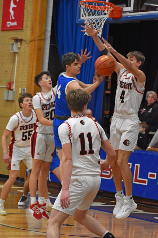 Spring Grove 71, Mabel-Canton 33 (SG: Bryce Berns 18 pts (7-7 FTs), 7 rebs, 4 asts; Ben Udstuen 14 pts (4-6 threes), 6 rebs; Lyric Stadtler 9 pts (3-8 threes). M-C: Isaac Underbakke 10 pts, 7 rebs; Tyler Larson 7 pts, 7 rebs. The Cougars led for the first fourth of the game, but the Lions played with a season-fewest seven turnovers, a season-most 11 baskets from 3-point land and a 14-to-3 advantage in offensive rebounds. M-C scored a season-low. Lions > 4-5, 5-8)