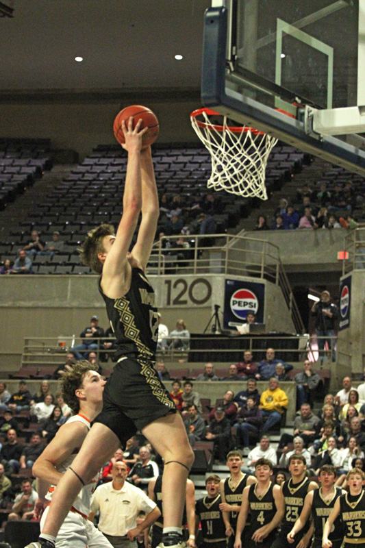 There is no argument as to who the best boys team is in Section 1AA this year. State third-ranked and 1-seed Caledonia (27-2), by virtue of its commanding win over Lake City in the 1AA title game, added the Tigers to the list of vanquished section foes. And all have been vanquished emphatically. Amidst Caledonia’ 14-0 record versus other 1AA teams, the closest game was 17 points, to St. Charles in early January. Included were big wins over the other top two seeds in the section, a crushing in-season victory over 2-seed Cannon Falls, and then a 21-point over 3-seed Lake City (19-9), as the Warriors claimed the section title. The Tigers fell behind early 12-1 and trailed by as least six the rest of the first half. Lake City’s first field goal came at the 9:48 mark. Caledonia was happy to play half-court defense. And the Tigers struggled to score against it, turning the ball over 20 times. Eleven miscues came in the first half. The Warriors led 28-20 at intermission, as the Tigers played better to end the half, staying within 10 points at the break. Brad King’s group then opened things up quickly in the second half, building a 43-26 lead. Even when Lake City scored five straight points to get the lead back down to 11 at 43-32, the Warriors promptly scored five points, and did so on one possession. Garrett Konz could not convert the and-one free throw, but Ethan Stendel and Ben Stemper kept the offensive rebound alive. It eventually found Mason King and he drilled a three. It was the epitome of hustle leading to extra points; a formula for teams that win. Caledonia was happy to play half-court offense too in the contest. As has been the case all season, defenses had to pick their poison of a team with scorers across the board. Four Warriors made double figures. The senior sharpshooter King (18 pts, 3-8 threes) led the way. Konz (13 pts, 10 rebs, 3 blks) threw down an alley-oop dunk from King. Reid Klug (13 pts, 8 rebs) neared a double-double. All three had multiple field goals in each half. Freshman Grant King added 10 points, nine after halftime. Ethan Stendel chipped in 5 (pts) and 6 (rebs). Lake City had zero players make double figures. Josh Wohlers (9 pts, 7 rebs) and Gavyn Lorenson (8 pts, 6 rebs, 4 asts) led the Tiger cause. Caledonia shot 26 of 61 (43%) to Lake City’s 15 of 45 (33%) and the Warriors had just eight turnovers. The 63-42 win was Caledonia’s 17th in a row. All but one have been by at least 12 points. All four section tourney foes were held below 50 points and the average margin of victory was 32.5 points per game. The hyped senior class of M-King, Konz, Klug, Stendel, Stemper, Tyler Hoscheit, Noah Treptow, and (injured) Will Hahn fulfilled one big goal with the title, the school’s first since the crazy triple overtime win over PEM in 2021-2022. The win also was a big, odd accomplishment, for Caledonia basketball in general. Entering the year, the girls had seven state appearances, five since 2007. The boys had 10 state appearances, seven since 2014. But this is the first year each made state simultaneously. Caledonia (28-2) got the 4-seed at the state tourney, will play 5-seed Minnehaha Academy (19-9). The girls also played Minnehaha to start their state tourney.