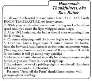 And here, as if whispering Merry Christmas, I received my “green light.” More than a class, this grant meant something bigger and tastier for me: CREAM! After 10 years as a farm wife, I’m ready for STRAIGHT CREAM. (I may have dreamt of heavy whipping cream, cream soups, raw butter, coffee creamer and homemade ice cream.) Excited is an understatement.