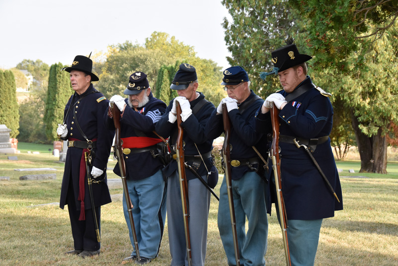 The group dedicated three headstones, provided free by the U.S. Department of Veterans Affairs, and rendered military honors for three Fillmore County Civil War Union veterans: Major George Andrus, Private William Henry Batterson, and Private William Perry, whose graves have gone unmarked for over a century.