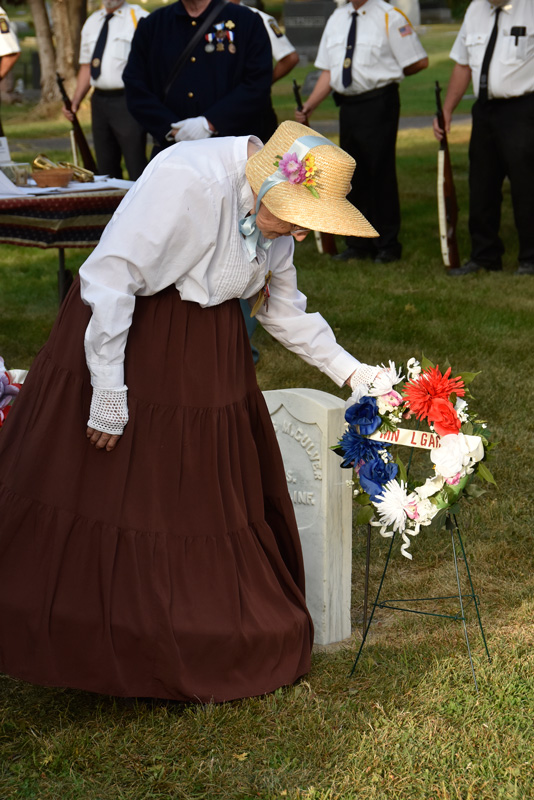 In addition to being a solemn ceremony, it was also an educational opportunity for those interested in Civil War history. Donna Johnson, dressed in period clothing, represented the SUVCW and offered information on membership, which requires documentation of a family member’s Civil War service.