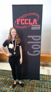 At the conference, Claire competed in the Job Interview category and received gold, scoring an impressive 97/100. She was the top scorer in the Central Region that included Illinois, Indiana, Iowa, Kansas, Kentucky, Michigan, Minnesota, Missouri, Nebraska, North Dakota, Ohio, South Dakota, and Wisconsin. Each state was allowed two participants in this category.