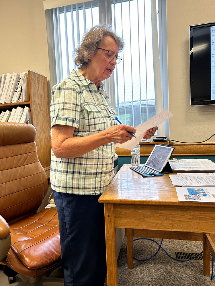 Treasurer Judy Graham reviews the budget with the council. Photo by Wanda Hanson