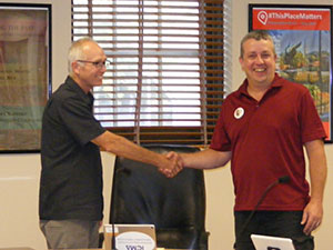 At the August 9 Chatfield City Council meeting city clerk Joel Young administered the oath of office to Dave Frank, who was appointed to fill a vacancy on the city council. Mayor Russ Smith read the Athenian Oath, which is basically a promise to make things better and to do no harm. Frank was welcomed back to the council. He served two terms on the council some years back. Councilor Josh Broadwater was absent.