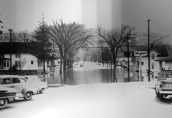 Besides time off from school, the town children would wade or ride their bicycles in the flood water. The adults had less fun. Many basements in the area closest to the river and the grade school were flooded and required to be pumped out. Some residents needed to leave their homes. One grade school student wrote about the March 1965 flood: “My family had to move out in a boat around midnight. We stayed with friends three nights and two days. Our basement was full of water and also some on the main floor.”