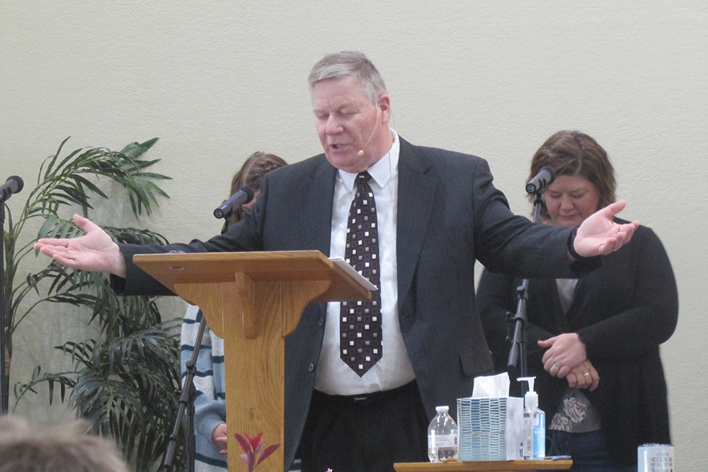 Pastor Larry E. Day offering the Mother’s Day service, 2024. Photo by Sara York