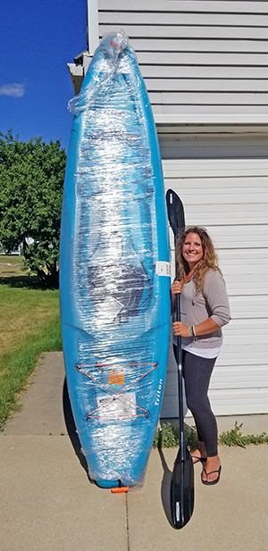 Trista Rowland, of Chatfield, Minn., stood next to her brand new kayak she won in a recent contest.
