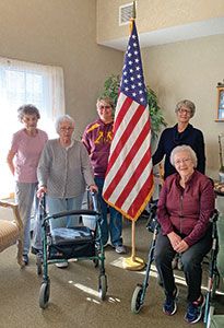Preston VFW Auxiliary recently donated a flag to Park Lane Estates. Pictured, left to right: Mary Munns, Lois Peterson, President DD Himli, Treasurer Roxie Knies, and Catherine Bakke.