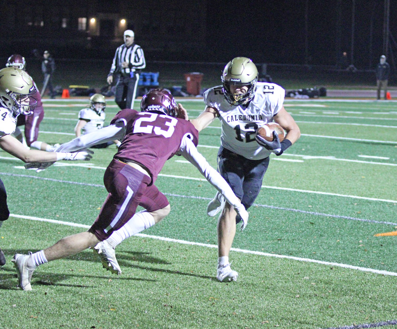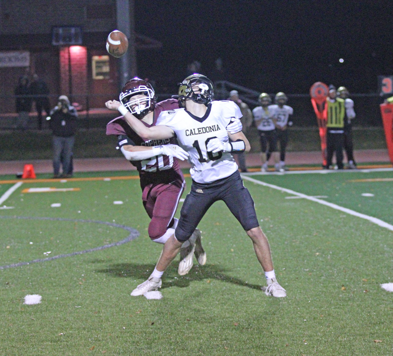 One of the state’s best Class AA, and overall, football rivalries renewed itself. Second-ranked Chatfield (1-seed, 9-0) took on #8 Caledonia (2-seed, 7-2) for the 1AA title. Nobody but the Warriors or Gophers have won the section in over a decade. It marked the sixth time since 2012 the teams played each other to go to state. A few big plays were huge in determining the outcome. Chatfield scored on its first drive with Carson Rowland hitting Tobin McMahon on a 56-yard TD pass. They succeeded on the two-point conversion. Caledonia also scored with its first possession, as a 38-yard Ethan Stendel to Ben Stemper pass play put the Warriors in the red zone. Stendel capped the series with an 8-yard TD run, then added the PAT. Those were the only two scores of the first half, albeit, Chatfield was stopped on the Warrior one-yard line in the second quarter. The Gophers led 8-7 at halftime. In the second half, after a defensive stop, Chatfield’s Ben Carrier ripped a 61-yard run to the Warrior eight. Three plays later, it was fourth and goal from the four. Via a misdirection flanker hand-off sweep, the unlikely duo of Ethan Eickhoff and Thane Schild hooked up for a huge 4-yard TD pass. The Warriors had Eickhoff’s run stopped, but he passed late for the wide-open TD! Rowland added the two-point run. Jeff Johnson’s Gophers went ahead 16-7. A series later, Chatfield was again in the Warriors’ end, but Stendel made a leaping interception. But it was good news, bad news for Cal. Stendel, the starting QB, and guy almost everything runs through offensively, had to sit out a couple plays due to a hard landing on the pick. The third play he was out, Carrier sacked Warrior backup QB Will Allen, causing a fumble. Living the defensive lineman’s dream, 6’3” 240-pound Ethan Cole recorded the 9-yard scoop and score! D’Andre Williams added the two-point run. Chatfield led 24-7 just into the fourth quarter. Caledonia scored later in the stanza following a 14-play, 75-yard drive. A Stendel 1-yard plunge plus kick made it 24-14 (5:27). But Chatfield’s Carter Ask recovered the onside kick. The rest of the game was quiet except the end for Gopher fans, as they rejoiced at their third 1AA title the past four years via a 24-14 victory. Carrier (11-113 rushing) topped 100 yards on the ground and he also had two forced fumbles. Rowland (4-9, 72 yards, TD, INT passing; 22-59 rushing) was the busiest Gopher. He added an interception. Stendel (13-27, 135 yards, INT passing; 22-62, 2 TDs rushing) shouldered a heavy load for the Warriors. Caledonia for just 85 yards including just 15 in the first half. Stemper (2-45 receiving), Fischer Wait (2-45 receiving), and Tristan Meyer (4-35 receiving) were their top receivers. The Gophers (10-0) head back to state a team with mojo. Many of the key players were on last year’s title winning wrestling team. State playoff brackets are seeded 1-4 by north and south. Chatfield is the South’s 1-seed and will play Southeast-White rival 4-seed Triton (8-2). Caledonia’s season finishes at 7-3.