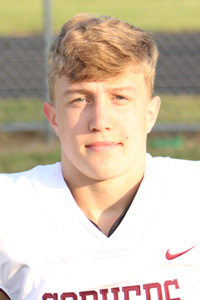 Section and sub-district contender Caledonia get six All-District picks in seniors Ethan Stendel (6’4” 215 QB/LB), Ben Stemper (6’0” 175 RB/LB), Fischer Wait (5’9” 155 WR/DB), Tanner Ginther (5’8” 175 OL/LD), Eric Welscher (OL/DL), and J.T. Hammell (OL/DL). The offense ran through the long athlete Stendel, as the senior third-year player amassed 18 total offensive touchdowns (98 of 185, 1,246 yards, 11 TDs, 5 INTs passing; 94-601, 7 TDs rushing). The rare quarterback/linebacker starter, Stendel was also credited with a team second-best 57 tackles, two forced fumbles, and three interceptions while kicking 26 of 32 PATs. The University of Minnesota commit was Caledonia’s only repeat All-District pick. Stendel has been selected to play in the Minnesota High School All-Star game. Stemper (100-669, 7 TDs rushing; 6-79 receiving) was the team’s leading rusher while having a team third-best 52 tackles, including four sacks, plus an interception return touchdown. Ginther and Hammell were two-way trench-battlers. Ginther led the team with 74 tackles. Hammell chipped in 34. Welscher was a key offense line starter. Wait was the team’s second leading receiver (23-371, 2 TDs receiving) and main return guy (10-187 yards on kickoff returns, 5-93 yards on punt returns). Stemper and Wait were AD HM last year. Making All-District HM are Will Allen (6’1” 175 Jr. WR/LB > 33 total tackles, interception return TD), Tristan Meyer (5’11” 160 Sr. WR/LB > 26-395, 4 TDs receiving, 23 tackles), and Mason King (6’0” 170 Sr. WR/DB). Meyer repeated as honorable mention. Said guys help Caledonia go 7-3 including making the 1AA title game.