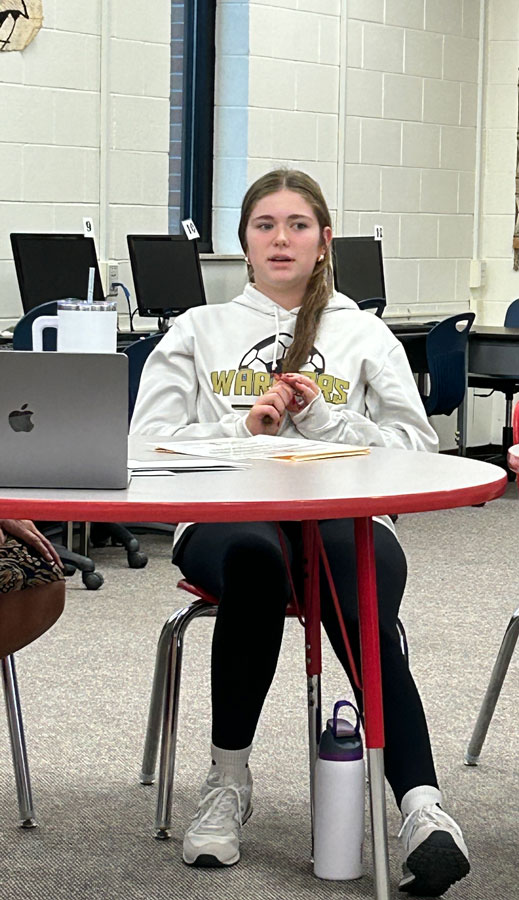 Julia Carr served as student representative on the school board last year; she returns as an experienced member. Julia reported that community members should contact the school if they need any projects done on the upcoming Community Cleanup Day.