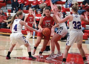 Grand Meadow 66, LeRoy-Ostrander 29 (GM: R. Landers 20 pts (10-13 FGs), 6 rebs; McKenna Hendrickson 14 pts, 7 rebs, 4 asts, 4 stls; Lauren Queensland 9 pts, 5 rebs, 4 asts; Kendyl Queensland 8 pts, 6 rebs. L-O: J. Runde 8 pts; Grace O’Byrne 8 pts; B. Nolt 6 pts (6-10 FTs), 16 rebs. GM led 46-17 at halftime)