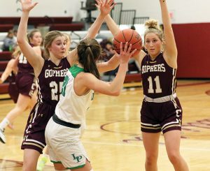 Southland 65, LeRoy-Ostrander 60 (L-O: Benita Nolt 19 pts, 13 rebs, 4 stls; Jordan Runde 17 pts, 5 rebs, 4 stls; Sam Volkart 13 pts (6-7 FTs), 13 rebs; Jenna Olson 9 pts (3-8 threes). Cardinals > 2-6, 3-14)