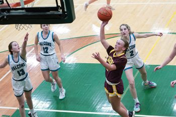 Fillmore Central 49, Rushford-Peterson 57 (R-P: Ellie Ekern 18 pts (6-8 FGs, 3-5 threes, 3-4 FTs); Tayler Helgemoe 14 pts (6-11 FGs); Kaylee Ruberg 13 pts (3-4 threes), 5 rebs, 5 asts, 6 stls; Nevaeh Happel 6 pts, 7 rebs. FC: Madison Simon 19 pts (8-16 FGs), 6 rebs; Regan Hanson 11 pts; Kammry Broadwater 11 pts, 8 asts. R-P shot 21 of 37 (57%) while FC shot 19 of 54 (35%). Trojans were 7 of 14 (50%) from deep, FC 4 of 9 (44%). Trojans sweep season series. Falcons > 2-8, 8-11)