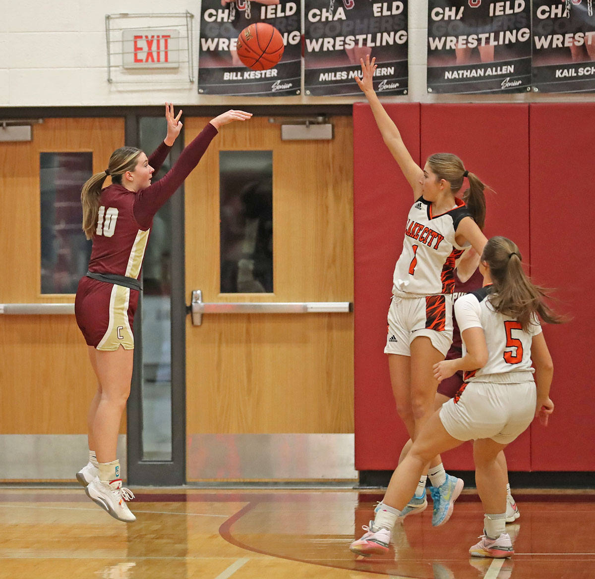 Lake City 56, Chatfield 44 (C: Evy Goldsmith 24 pts (7-10 FTs), 7 rebs. Chatfield led until late in the first half and trailed 29-22 at halftime. The Tigers shot 36% (21 of 59), Gophers 26% (13 of 50))
