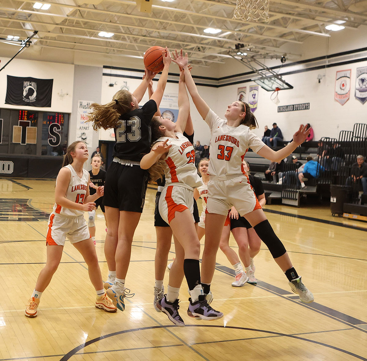 Lanesboro 44, Kingsland 67 (K: K. Hauser 20 pts (8-13 FGs, 4-7 threes), 5 rebs; Morgan Phillips 14 pts (6-10 FGs); Chantle Reiland 6 pts, 6 rebs, 12 asts. L: Taylor Hanson 13 pts (5-6 FGs), 10 rebs; Jensyn Storhoff 10 pts (6-7 FTs), 4 rebs, 6 asts, 6 stls. Lanesboro won at the line 14 of 25 (56%) to 3 of 15 (20%) but Kingsland from deep, 10 of 26 (39%) to 2 of 17 (12%), and turnovers, 15 to 22. The teams played each other back-to-back with Kingsland winning days earlier 58-48)