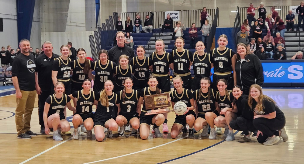 The Warriors (6-seed, 28-4) then matched up with Sauk Centre (4-seed, 28-3) back at Concordia University for each team’s third game in three days, the consolation championship or fifth place game. The game had a slow start but a fantastic end. It was one of the Warriors’ top battles of the season. It was fascinating on multiple levels. First, Caledonia entered looking up at their opponent for about the first time all year. With 6’1” Sienna Augedahl, 5’11” Josie Foster, 6’1” Kensey King, and 5’10” Aubrie Klug all starting, the Warriors are rarely the shorter team. But the coolly named Mainstreeters boasted a lineup of three future college players including 6’4” center Victoria Jennissen, 6’2” forward Elizabeth Herickhoff, plus school all-time leading scorer Cierra Kortan. The latter had the biggest impact on the game. Caledonia then had the rare start where their two leading scorers took forever to get going. Foster’s first basket was Caledonia’s last of the first half. Klug’s first was the first of the second. But riding reserve Elsa Blum (8 points), Augedahl (6 points), and King (5 points), the Warriors and Sauk Centre were still tied 24-24 at intermission. The game also had no lead greater than six. Blum, who came in averaging low single digits, was the Warriors’ best offense for a while. Off the bench, the sophomore scored 18 points including hitting a pair of second half three-pointers. But after back-to-back Kortan threes, Jennissen gave the Mainstreeters their first second half lead at 45-43. Blum then hit her second three. The exchanges were the first two of six lead changes in the final 9:00. Despite starting slow, the combination of Klug and Foster finished strong, helping the Warriors to the win. They scored the final 22 Caledonia points! After the teams exchanged the lead or brought a tie-game on five straight possessions late, Klug hit her second straight three (and scored her eighth straight point) to put team Cal up for good at 61-58 (2:28). Foster then scored five straight points including a notable driving score to make it 65-60 (1:37). The duo then hit enough free throws late, 4 of 6, to help ice the contest. Despite seeing Sauk Centre score 25 points at the free throw line, Caledonia won its last game of the season, won the state consolation final slash fifth place game by 69-63 tally. Scoring all her points in the second half, Klug (19 pts, 9 rebs, 4 asts) led the Warriors offensively. Blum’s 18 points (6-8 FGs) were a career-high. Foster (14 pts) scored all but three of her points in the second half. Augedahl (9 pts, 3-7 threes, 10 rebs) neared a double-double. King added 7 points. It was one of the Warriors most offensively balanced games of the year. Kortan, who will play her future games on the same court as her last game (Concordia University), led the Mainstreeters with a game-high 30 points. She hit 13 of 16 free throws. Jennissen added 15 (pts) and 9 (reb). They were the only two Sauk Centre players with more than six points. Each team kept the turnovers down (Cal 10, SC 8). Sauk Centre was plus-10 at the free throw line, making 25 of 31 (81%) to Caledonia’s 15 of 22 (68%). But the Warriors made six more field goals overall including 8 of 22 three’s (36%) to SC’s 4 of 18 (22%). They also were quicker to the ball, winning on the glass 41 to 28. Klug made the Class AA All-Tourney team, averaging a team-best 20 points per game over the three contests. Foster was second best at 17 PPG. Blum scored 30 off the bench in the three games, 27 off which came in the last three halves of play. The Warriors fantastic season thus ends at 29-4. Starters Foster and Augedahl are the only seniors.