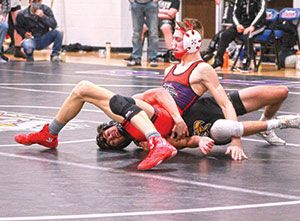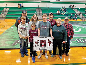 GMLOS wrestling’s response to its third loss was to win six straight. Two key section foes and a pair of “Journal 10” programs were included in the run. Randy Smith’s group first took on a “Tri” with 1A strong teams Z-M and Goodhue (in Zumbrota). The Cougars and Bulldogs battled closely up through 160. Weights 120 through 160 featured six decisions and one major