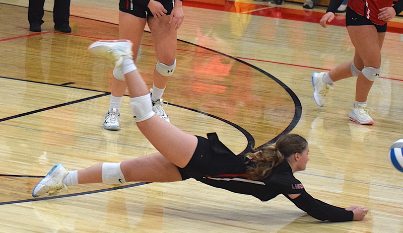 Lion INDIVIDUALS – Digs 30: Izabel Kaufmann 6, Sydney Holland 5, Katelyn Kraus 5, Kendal VanMinsel 4, Jordis Neeley 3, Joelle Halverson 3, Katie Klug 2, Hailey Normann 2. Set Assists 26: Kendal VanMinsel 18, Sydney Holland 4, Katelyn Kraus 2, Jordis Neeley 1, Izabel Kaufmann 1. Kills 30: Joelle Halverson 8, Kendal VanMinsel 5, Jordis Neeley 5, Hailey Normann 5, Emerson Ingvalson 4, Katelyn Kraus 2, Sydney Holland 1. Hitting efficiency (K-E/att): Joelle Halverson 41% (8-1/17); Kendal VanMinsel 36% (5-1/11); Sydney Holland 33% (1-0/3); Hailey Normann 17% (5-3/12); Jordis Neeley 12% (5-3/17); Emerson Ingvalson 11% (4-3/9); Katelyn Kraus 0% (2-2/7). Ace Blocks 0. Service Aces 22: Sydney Holland 8, Jordis Neeley 7, Joelle Halverson 3, Kendal VanMinsel 2, Katie Klug 2. Serving 89%: Katie Klug 100% (7-7); Sydney Holland 96% (22-23); Jordis Neeley 90% (18-20); Kendal VanMinsel 90% (9-10); Joelle Halverson 80% (8-10); Izabel Kaufmann 33% (1-3). Scoring 52: Jordis Neeley 12 (5K, 7A); Joelle Halverson 11 (8K, 3A); Sydney Holland 9 (1K, 8A); Kendal VanMinsel 7 (5K, 2A); Hailey Normann 5 (5K); Emerson Ingvalson 4 (4K); Katelyn Kraus 2 (2K); Katie Klug 2 (2A)