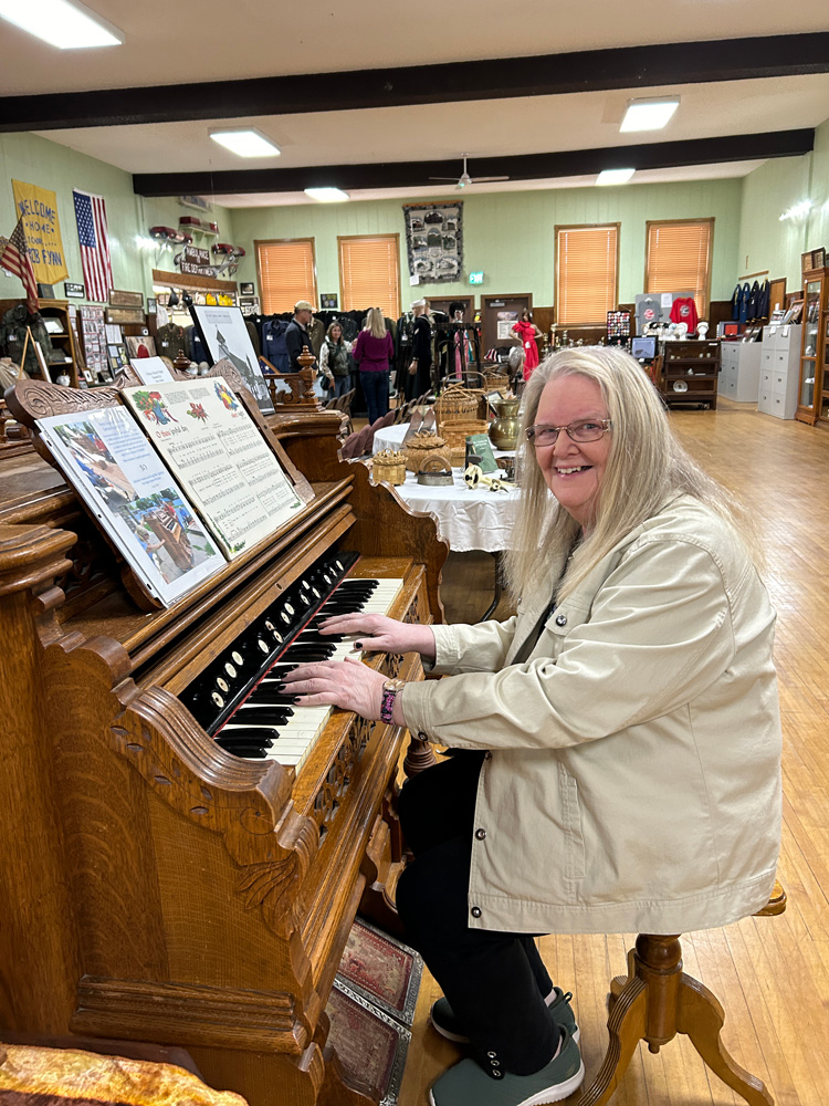 Some of Michelle and Shelley’s favorite items at the museum include memorabilia from local businesses such as the root beer machine and cash register from Benson’s Cafe and a pump organ that still plays from St. Mary’s Catholic Church. A large rectangular butter churn that was used on a farm that had a dairy has made its way to the museum. It had been used to churn butter which was then delivered by wagon and sold to local households.