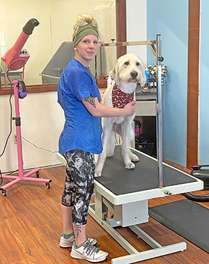 She schedules grooming appointments, one-on-one, so she has time to work with anxious dogs to help rehabilitate them to grooming protocols and procedures.
