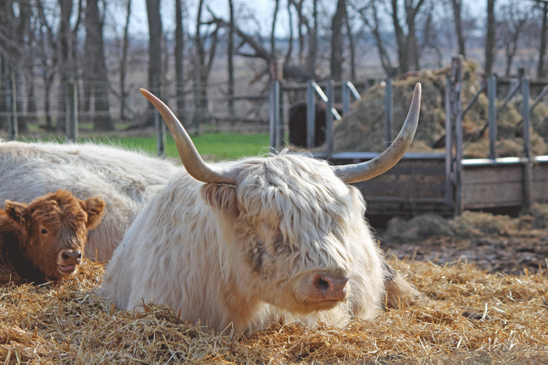 The herd built slowly as the two learned the ropes. It was a full seven years before they had a weaned calf to sell since it takes 26-30 months to finish a steer at 1,000 to 1,200 pounds on grass. Luckily, Highlands don’t require the same amount of feed as some of their counterparts during the cold months. Young breeding stock and steers are expected to gain over the winter months on hay with no additional feed to maintain condition.