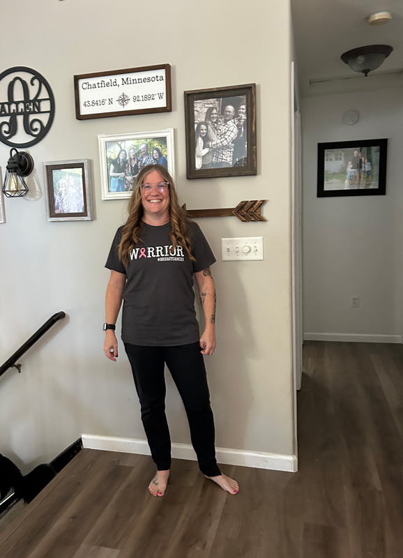 Friends and family were crucial in getting through this time. Holly remembers calling her friend Elizabeth Fuglested on her way home to Chatfield from the clinic when she was diagnosed. Both Holly and Elizabeth were “ugly crying all the way.” Elizabeth immediately left her job that day to come and support Holly and continued to be there for her friend throughout. Holly’s sister came and took care of her after her mastectomy.