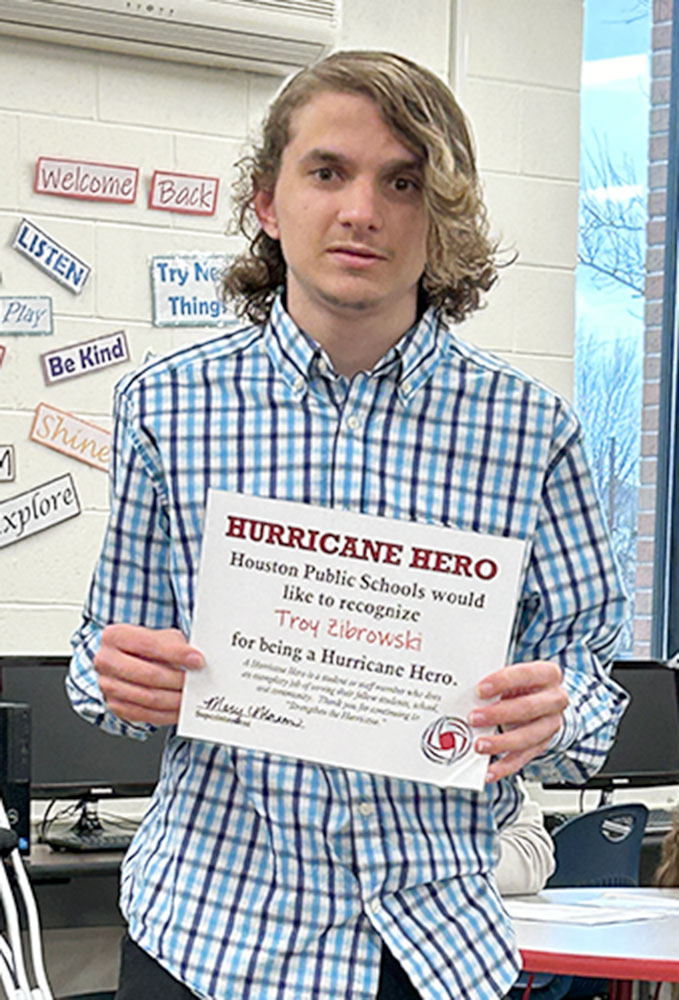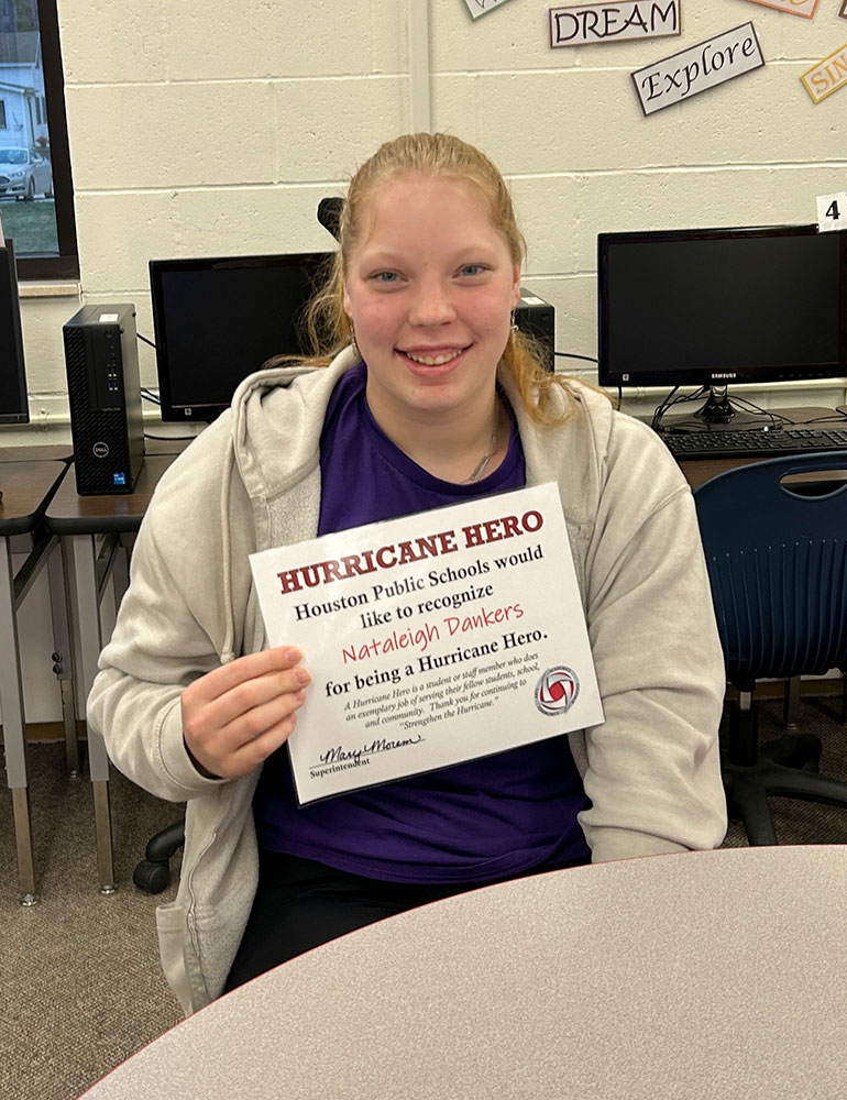 AAA Athletes Nataleigh Dankers and Troy Zibrowski were recognized as Hurricane Heroes. Dankers played girls basketball and is in choir. Her favorite class is the CNA course; Dankers plans on going into nursing. Zibrowski played soccer and is active on the robotics team and band.