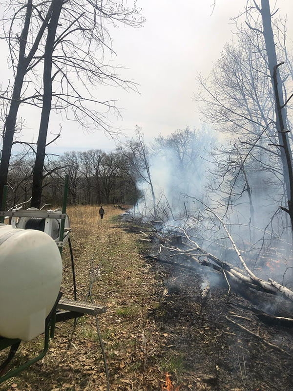 A local landowner, who wishes not to be named, has over 20 years of experience in using prescribed burns and was happy to share some of his experience and tips. This landowner began doing the burns to “clean up the riffraff and invasive species.” He wanted to improve habitat for wildlife and retard the spread of buckthorn and other woody plants.