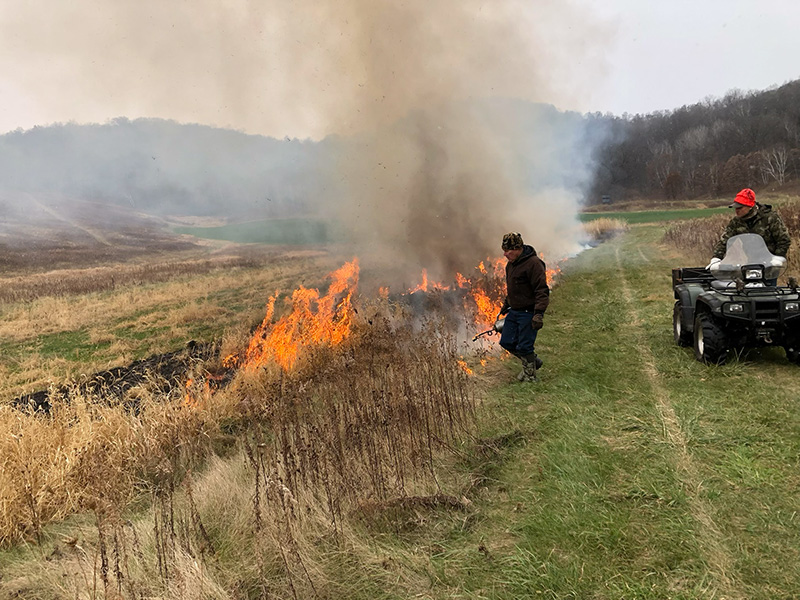 Doing a prescribed burn exposes the acreage to sunlight and returns nutrients to the soil. It knocks back invasive species, and helps to diversify plant species.
