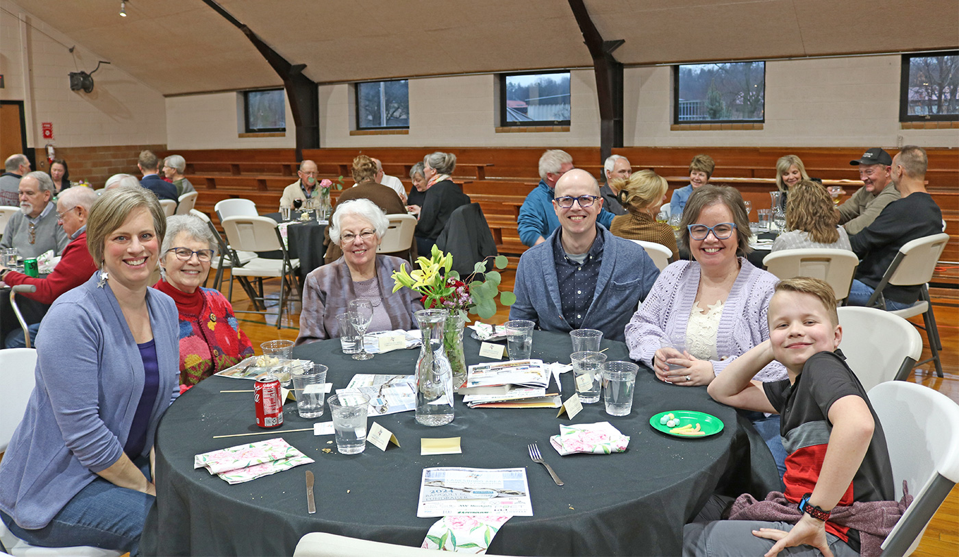 There were smiles all around during the LACF annual banquet including at this table of local residents. From left: Stela Burdt, Kay Wold, Ceil Allen, Ryan Kling-Punt, Sara Kling-Punt and Oliver Kling-Punt. Photo by Barb Jeffers