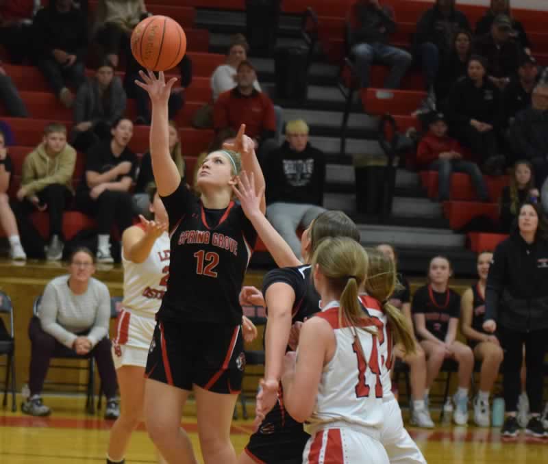 The league-leading Lions (5-1, 4-0 SEC) never trailed but the winless Cards (0-9, 0-5 SEC) trimmed a 16-point deficit back to single digits at 52-43 about halfway through the second half. However, Spring Grove scored the next 16 points and led by 27 before L-O tallied the final eight points.