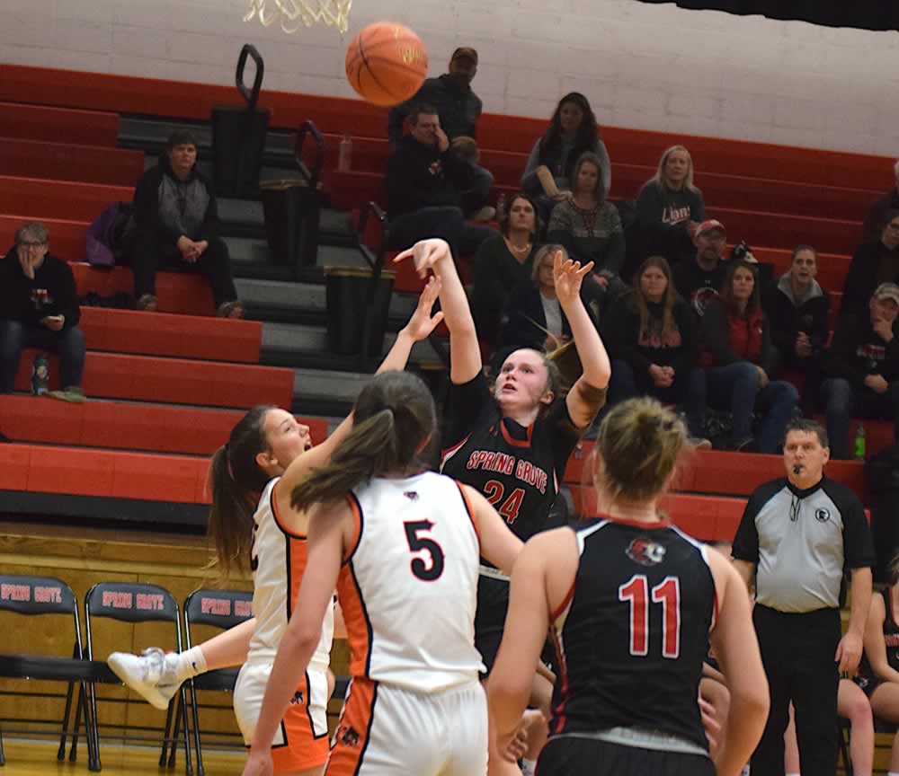 It was a tough assignment for Spring Grove against a school with nearly four times as many students. Depth was a factor with reserves scoring nearly half (28) of Waukon’s 57 points. Nine Lions scored but no one with more than Kylie Hammel’s 6 points.