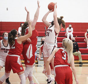 Lion guard Jordian Leahy also scored in double figures with 16 points, and Addyson McHugh added 7 points, 9 rebounds, 5 steals and 3 blocked shots. Eighth grade point guard Emerson Ingvalson collected a career-high 8 rebounds.