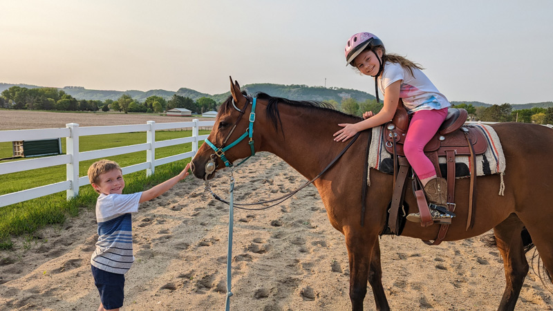 Seeing kids develop a bond with the animals is one of the family’s favorite things about operating the Arena.  Today, they work with the Rushford-Peterson Community Ed Program to provide local kids the opportunity to ride in a non-competitive setting.  Rachel emphasized that its really about giving kids the chance to be around a horse.